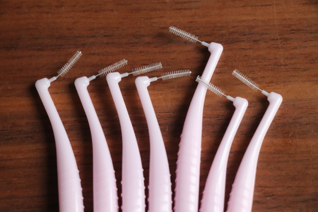 歯間ブラシとデンタルフロスの最大の違いは、清掃部の太さです。歯間ブラシのほうが先端部が太くできているため、より広いすき間や被せものの内側といった箇所の清掃に適しています。