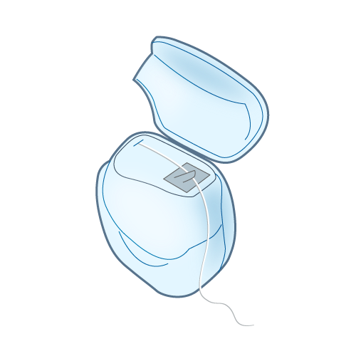 ロールタイプはケースに収納された状態で市販されており、フロスを適当な長さで切り取り、指に巻き付けて使用します。
